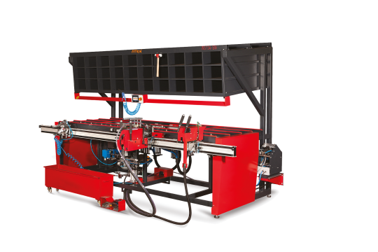 RS Extra - Špeciálny revolverový systém pre automatické nastavenie - Táto možnosť znamená, že môžeme pridať revolverový systém, ktorý vám dáva možnosť vykonávať úpravy medzi rôznymi typmi profilov nie manuálne, ale automaticky - automaticky nastavovaný revolverový systém pre zoradenie, jednotlivých agregátov podľa porofilu a kovania.