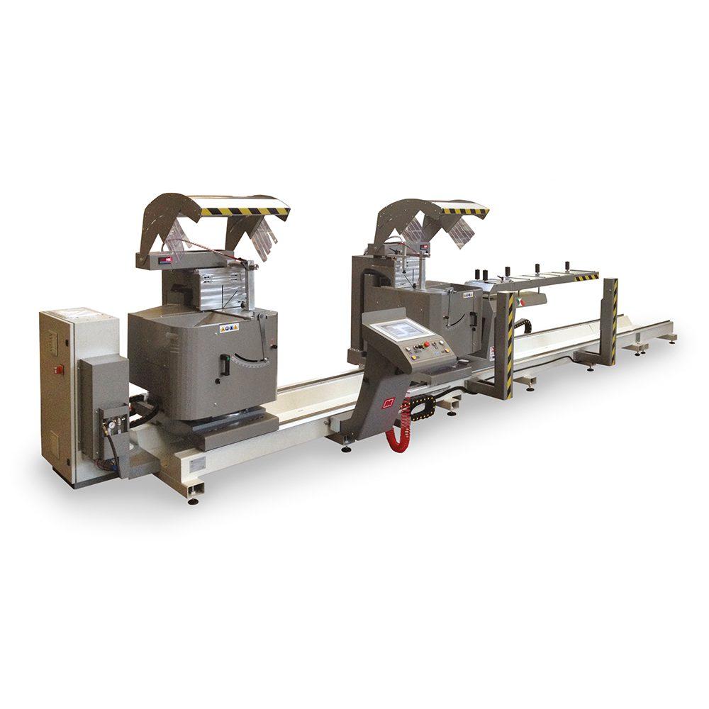 térbeli vágás lehetőségével, a bal oldali fix fűrészegységgel, és a jobb oldalon a szervomotorosan mozgó egységgel.