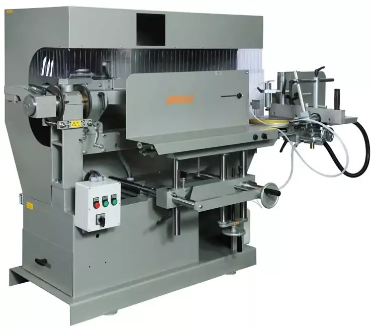 Mindkét fűrészlap egy kézi tekerővel ellátott csigahajtómű segítségével +/-45°-ig dönthető.