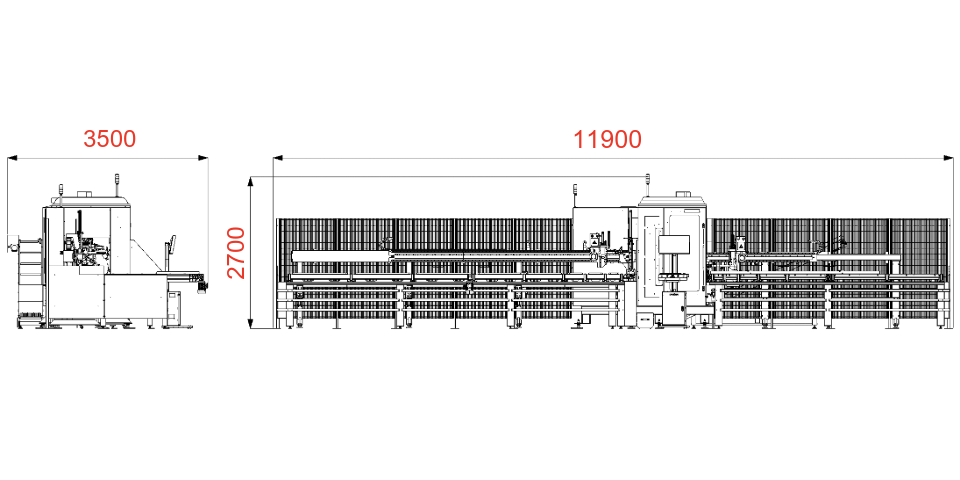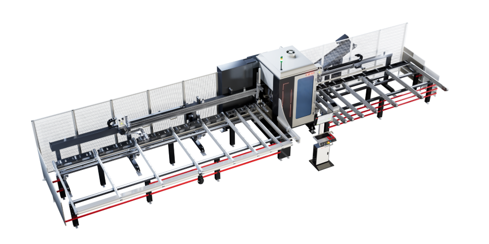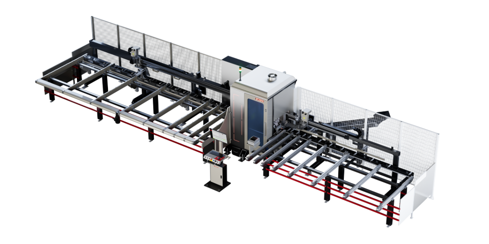 A rendszer akár 8 profil egyidejű adagolására képes, maximális megmunkálási hossz 6200 mm.
