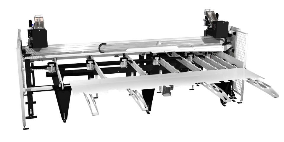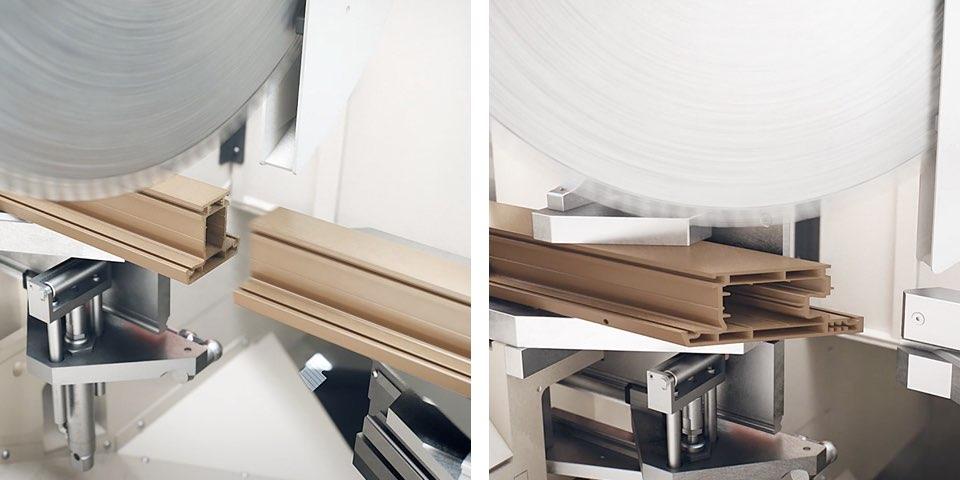 A gép egyetlen integrált rendszerben végzi a profil adagolást, megmunkálást, vágást, címkézést és hulladékkezelést. Két független, 3 tengelyes szervo vezérelt megmunkáló egysége egyidejű, nagy pontosságú marást tesz lehetővé.