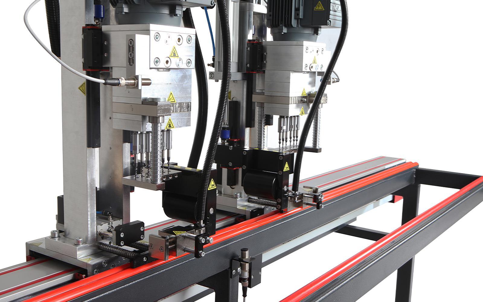- Fúrás több fúrófejjel felszerelt aggregátumokkal különböző sorozatokhoz és különböző méretű ablak- és ajtókeretekhez használható vonalzó, ceruza és fúrósablonok használata nélkül